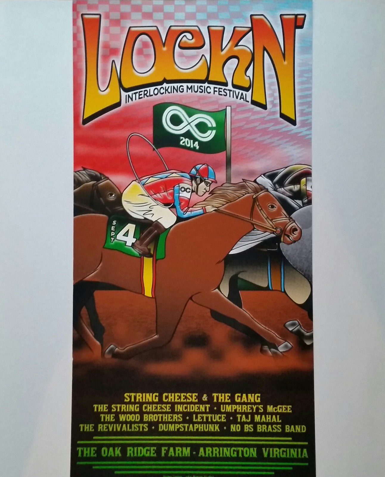 The first of four in a series, one for each day of this festival. The posters featuring a horse racing theme in honor of the Oak Ridge track which inspired Lockn’s logo, with the jockeys dressed to reference the festival’s headlining bands.
